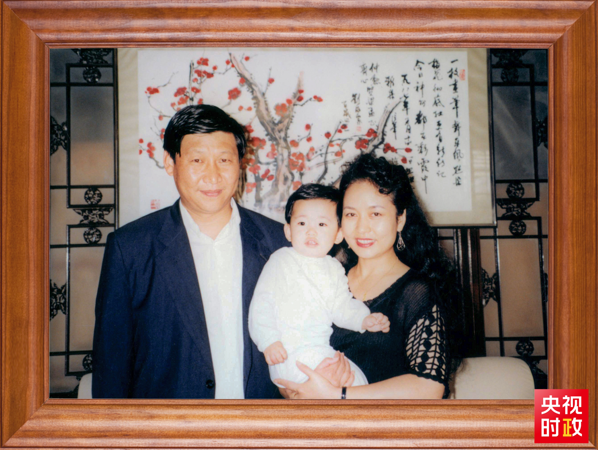 △这是习近平一家三口的合影。这张照片第一次出现在他的书架上。