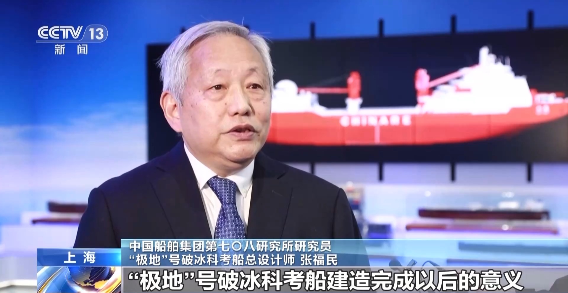 中国船舶集团第七〇八研究所研究员“极地”号破冰科考船总设计师 张福民:“极地”号破冰科考船建造完成以后的意义就在于,我们国家把整个冰区的,也就是包括南北两极的科考体系,完全系统化了,就是我们自主建立了一个完整的可靠平台,能够有利于我们国家未来深海、深远海以及极地的海洋科学技术发展的需要。