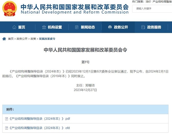 中国经济网1月3日讯(记者 郭跃)日前,国家发展和改革委员会产业司发布《产业结构调整指导目录(2024年本)》,《目录(2024 年本)》将于2024年2月1日起施行。