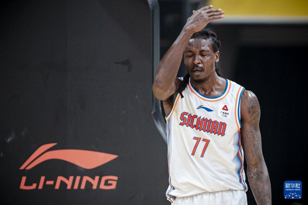 1月3日,四川金强队球员奥贝克帕在扣篮失败后。新华社记者 江汉 摄