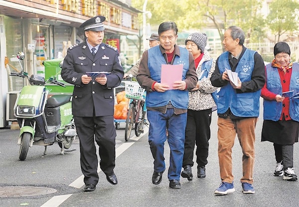 为引入更多力量参与群防群治,他又主动联合社区党委,组建“蓝马甲”平安建设志愿服务队,感召有责任感、有奉献精神的党员群众共同参与平安建设,目前队伍已壮大到90人。“众人拾柴火焰高,在大家齐心协力下,社区治安持续向好,辖区侵财类警情已连续4年零发案。”胡志红自豪地说。