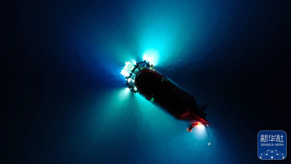 ↑2023年5月30日,俯瞰驶向深海考古的潜水器——“深海勇士”号(无人机照片)。中国文物工作者搭乘“深海勇士”号载人潜水器将水下永久测绘基点布放在海底,标志着南海西北陆坡一号、二号沉船第一阶段考古调查工作正式启动,我国深海考古的新篇章由此开启。新华社发(黎多江 摄)