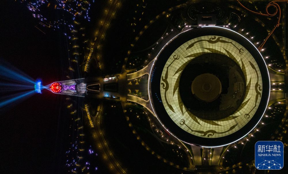 ↑2023年4月19日在四川成都拍摄的第31届世界大学生夏季运动会开幕式主体育场及主火炬(无人机照片)。新华社记者 沈伯韩 摄