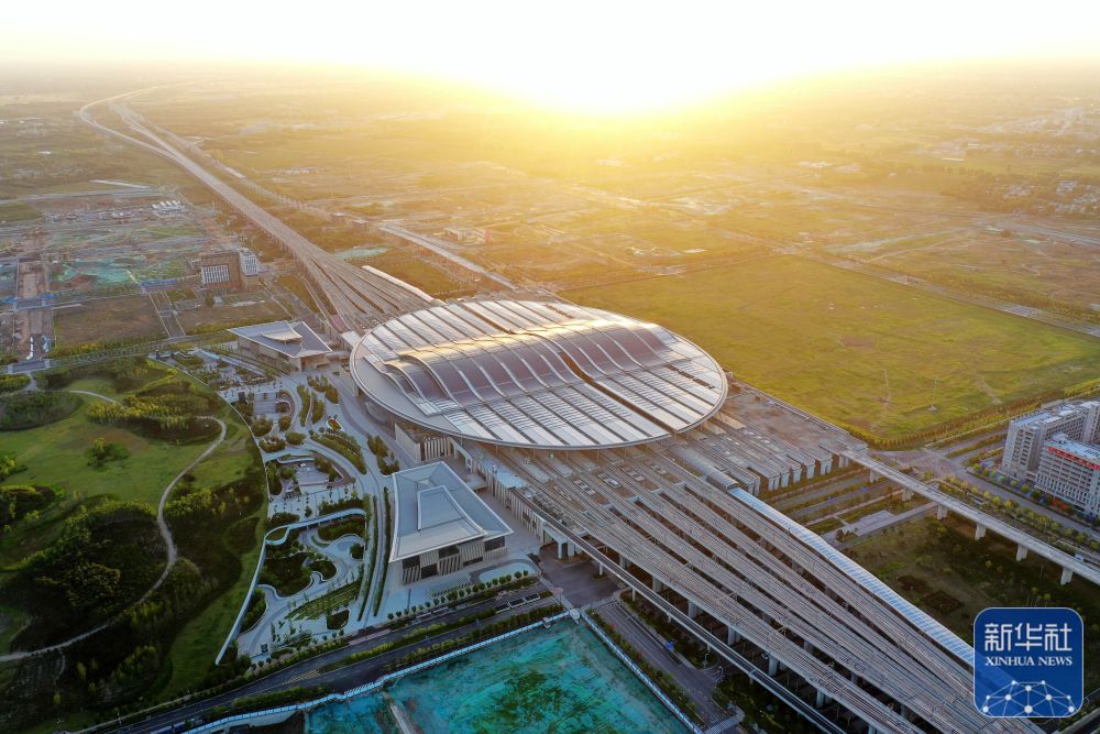 ↑2023年6月2日拍摄的雄安站(无人机照片)。雄安站位于雄安新区昝岗片区,是雄安新区开工建设的第一个重大基础设施项目。新华社记者 朱旭东 摄