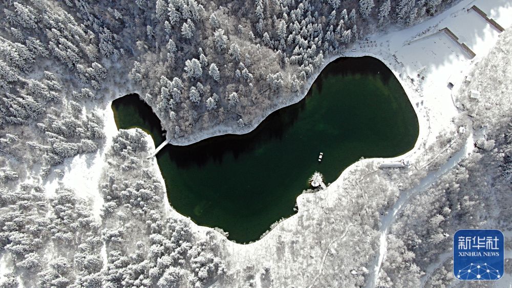 ↑2023年4月6日在甘肃省陇南市宕昌县的官鹅沟森林公园鹅嫚沟景区拍摄的雪景(无人机照片)。新华社发(刘辉 摄)