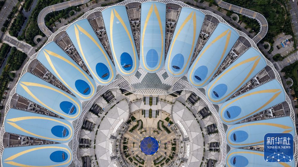 ↑2023年8月7日拍摄的第七届中国—南亚博览会举办地昆明滇池国际会展中心(无人机照片)。新华社记者 陈欣波 摄