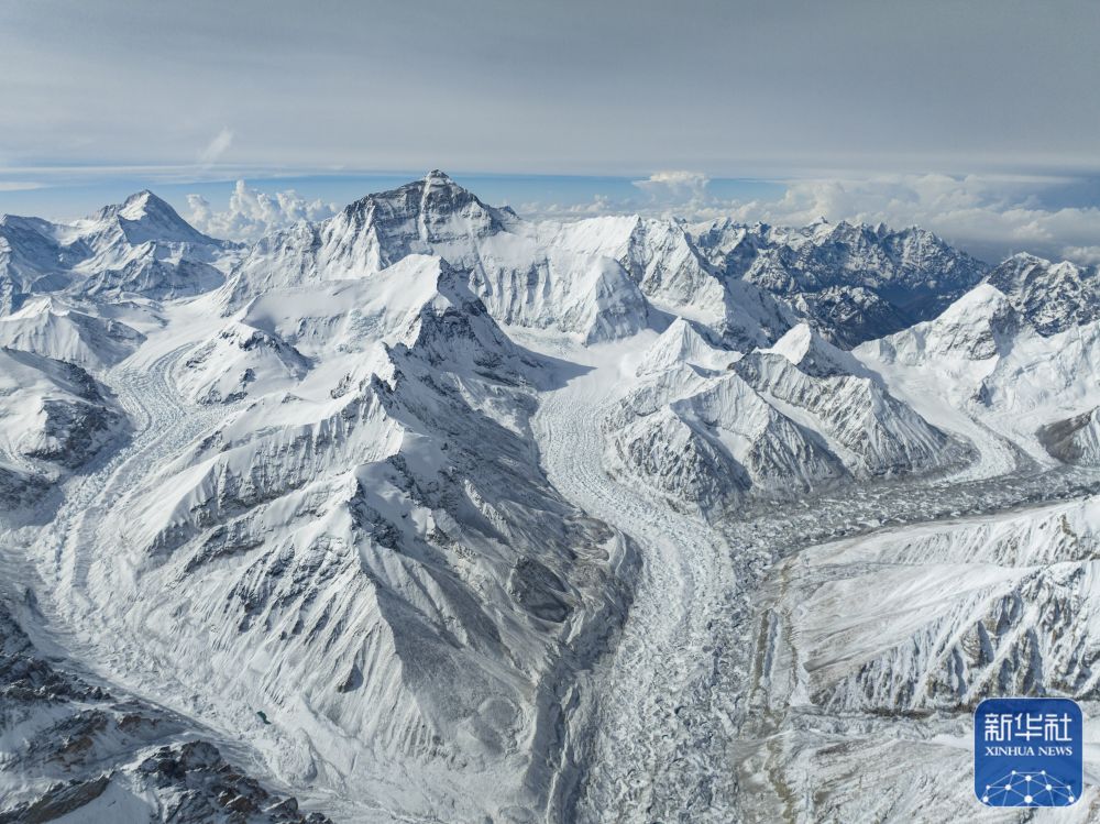↑2023年5月23日在海拔8400米左右高空拍摄的世界之巅珠穆朗玛峰(无人机照片)。新华社记者 孙非 摄