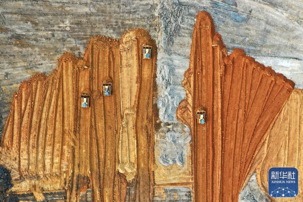 ↑2023年3月2日,推土机在福建省浦城县石陂镇申明村高标准农田改造工地上施工(无人机照片)。新华社记者 姜克红 摄