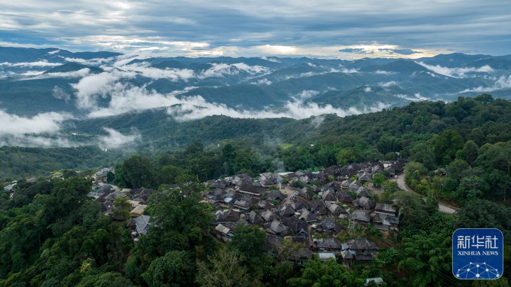 ↑2023年9月17日在云南省普洱市拍摄的被山林与茶园环绕的景迈山翁基古寨一景(无人机照片)。9月17日,中国“普洱景迈山古茶林文化景观”申遗项目在第45届世界遗产大会上通过审议,列入《世界遗产名录》,成为中国第57项世界遗产。新华社记者 胡超 摄
