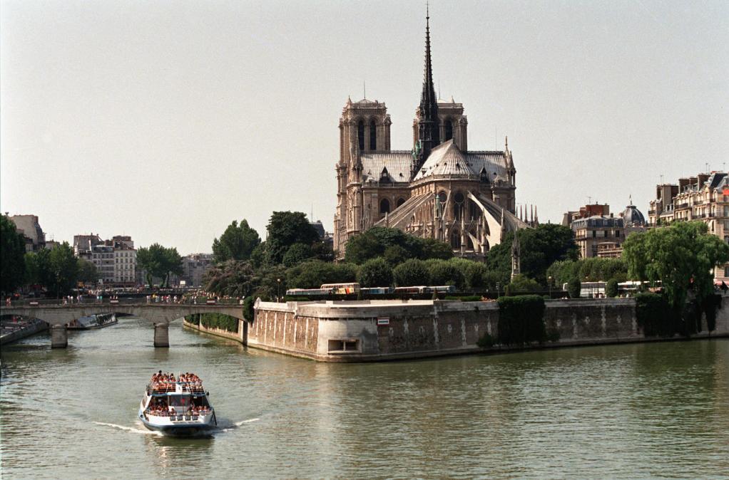 ↑1979年,中国作家代表团访问巴黎期间,著名作家巴金和女儿李小林在巴黎圣母院附近的塞纳河上留影。
