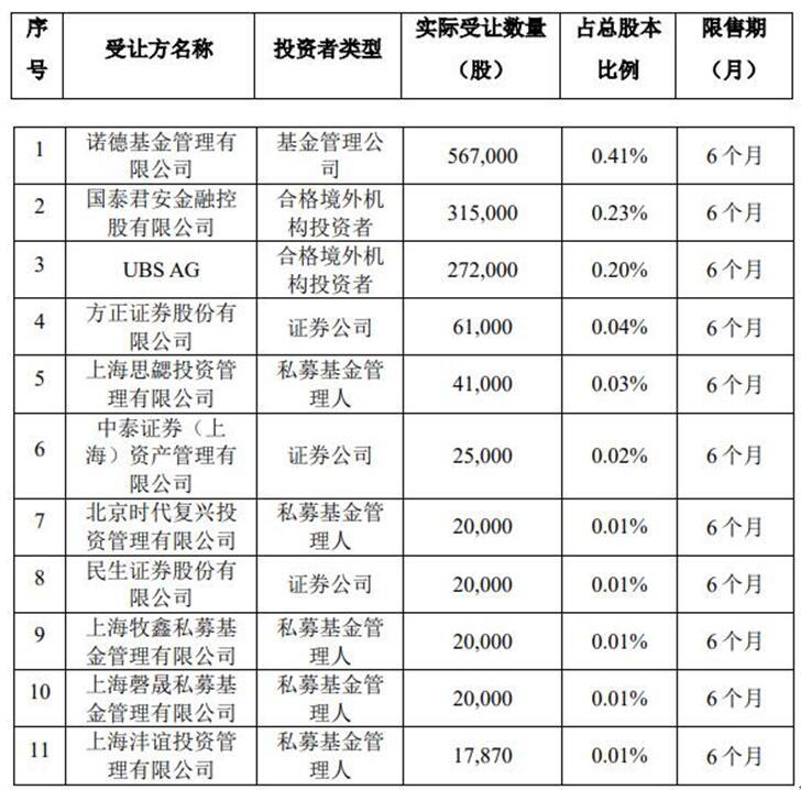 芯源微公告称,关于本次询价结果,组织券商合计收到有效报价19份。根据认购邀请书约定的定价原则,最终11家投资者获配,最终确认本次询价转让价格为121.59元/股,转让的股票数量为137.887万股。