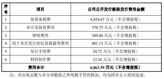 芯源微发行费用总额为6,062.59万元(不含增值税),其中保荐承销费4,824.67万元(不含增值税)。