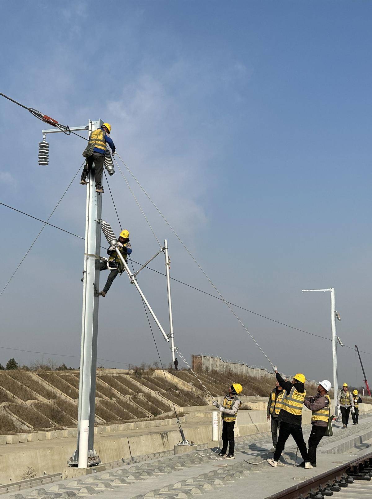 荆荆高铁正在架线。中铁武汉电气化局 供图