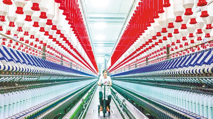 1月4日,汉川市湖北华帛纺织科技有限公司女工骑着小型电动车,穿行在2.5万绽高速运转的智能数字化绦纶缝纫线生产车间。华帛纺织一期引进全球领先的生产设备,同步安装数据监控系统,实现全锭监测,生产过程全流程智能化控制。投产仅3个月,产品就远销欧美、东南亚等地区,赢得市场认可。 (视界网 晏美华 摄)