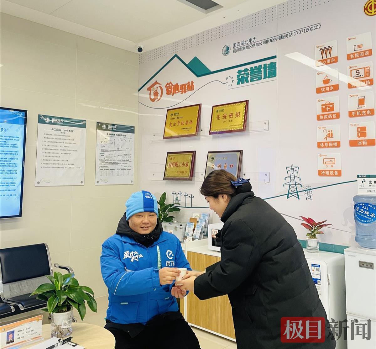 “路上终于有了补给点,天气冷了进来喝杯热茶,别提多暖心。”1月8日,刚跑完早高峰的外卖小哥走进国网荆州市荆州区供电公司工会“爱心驿站”稍作休息。一上午,不少身穿蓝色、黄色工作服的小哥进进出出,在此短暂“充电”后又穿梭在城市的大街小巷。