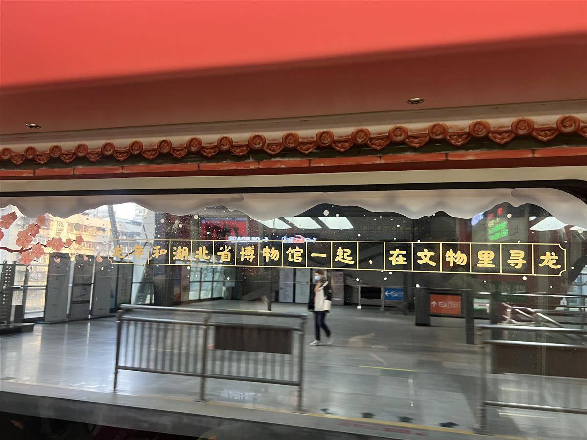 武汉地铁1号线是武汉首条地铁,也是唯一一条全高架地铁,整条线路西起东西湖区径河站,东至黄陂区汉口北站,贯穿起东西湖区、硚口区、江汉区、江岸区、黄陂区5大片区。“龙专列”现身即引爆流量,成为全网“显眼包”。1号线黄浦路地铁站,乘客们刚进站就被车厢内的“龙”元素吸引,不少年轻人拿起手机拍照、打卡。