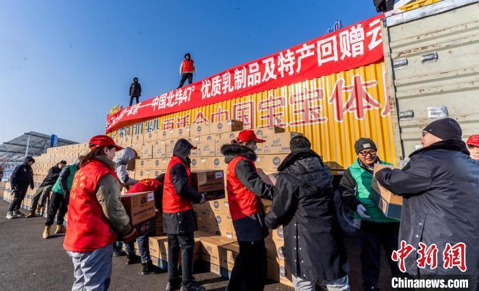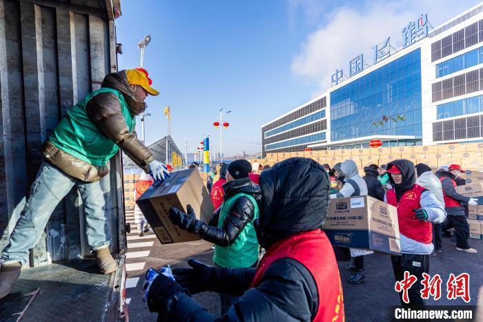1月12日,黑龙江回赠云南7.5吨齐齐哈尔特产。黑龙江省商务厅供图