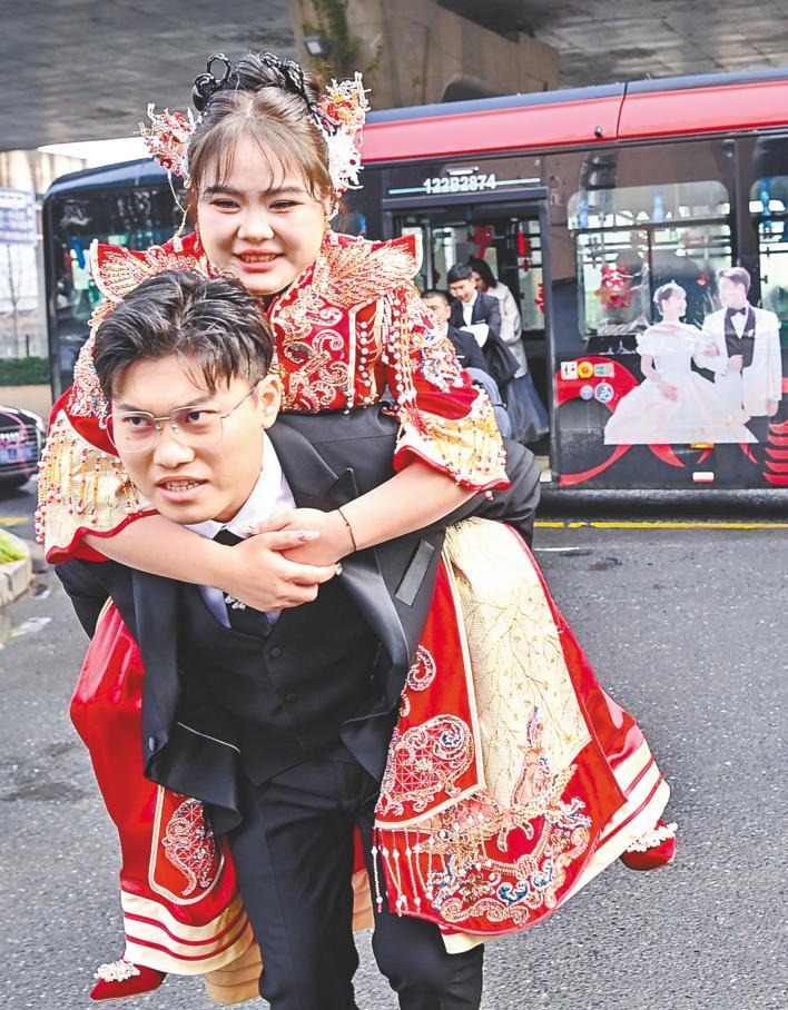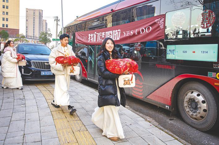 为适应这一新风俗,满足市民个性化需求,同时,也为拓展公交服务市场,一些城市正推出定制“公交婚车”租赁服务。2023年元月起,武汉市公共交通集团有限责任公司开始定制婚车服务。根据行驶里程,顾客可花费600元至1000多元租用一台30座的普通公交车,并配备司机。新业务一上线就受到欢迎,一年来,该公司已承接近百单定制婚车接亲业务。
