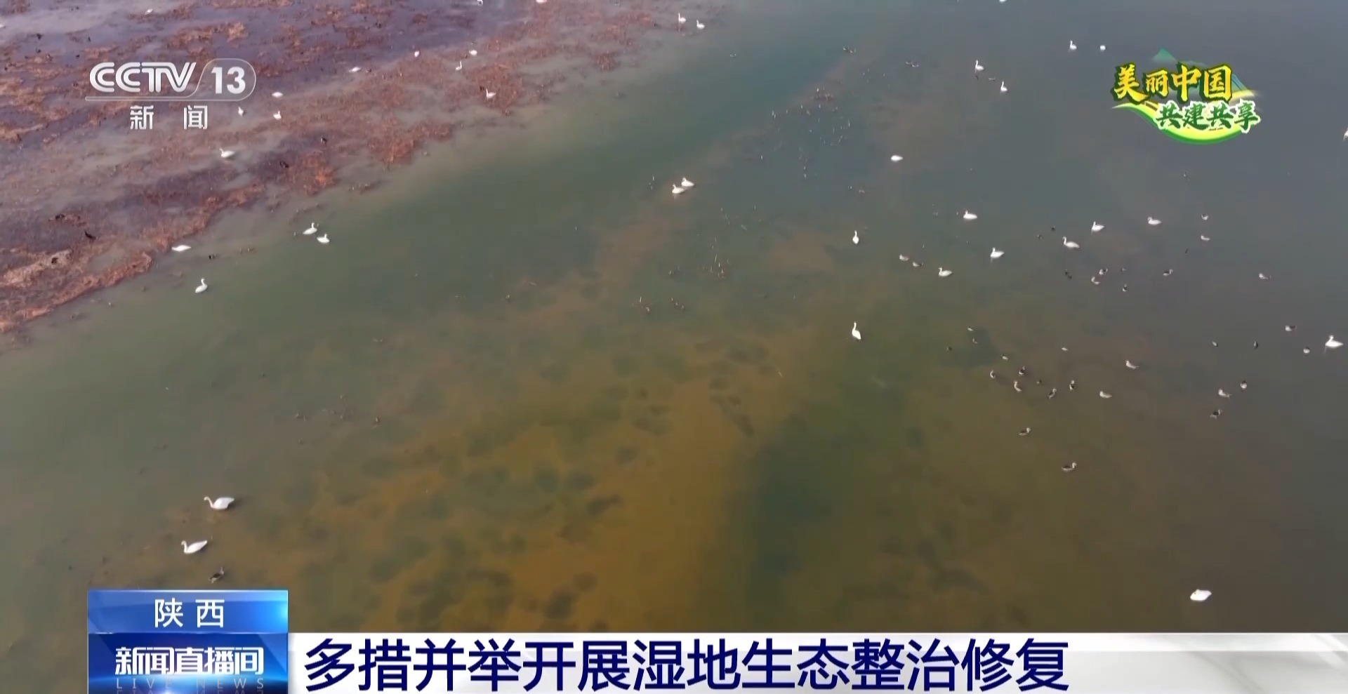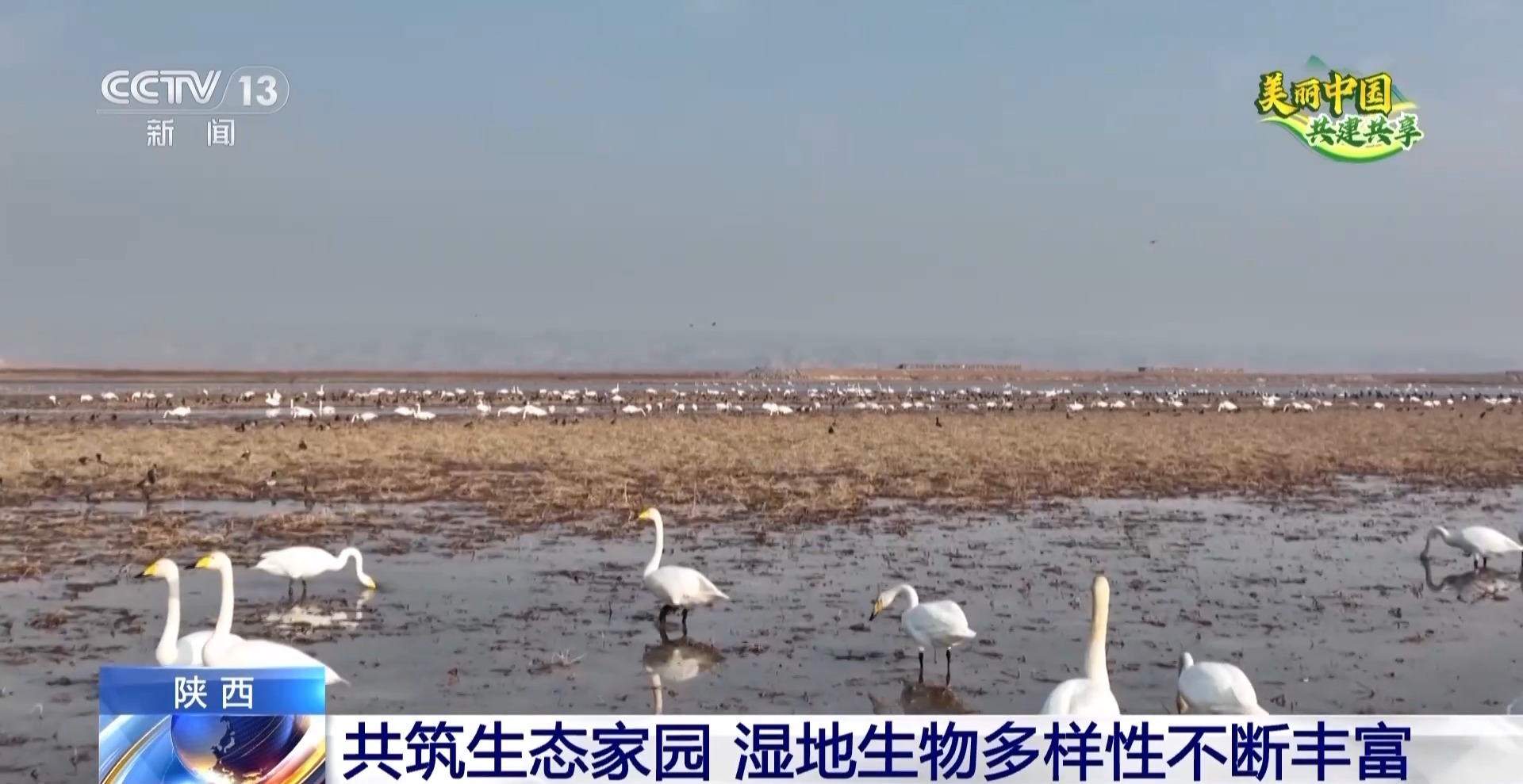 总台记者 温超:我现在是在陕西省渭南市合阳县的黄河边,在我身旁就是陕西黄河湿地省级自然保护区合阳段。入冬以来,这里迎来了大批的越冬候鸟,这片湿地成了鸟儿们的乐园。