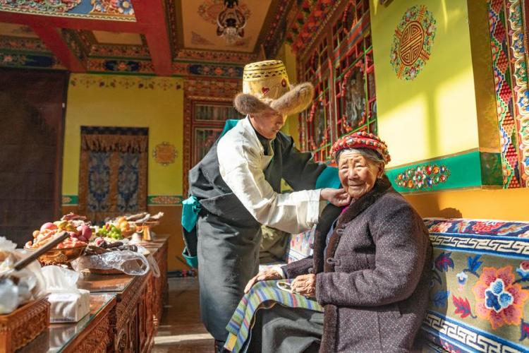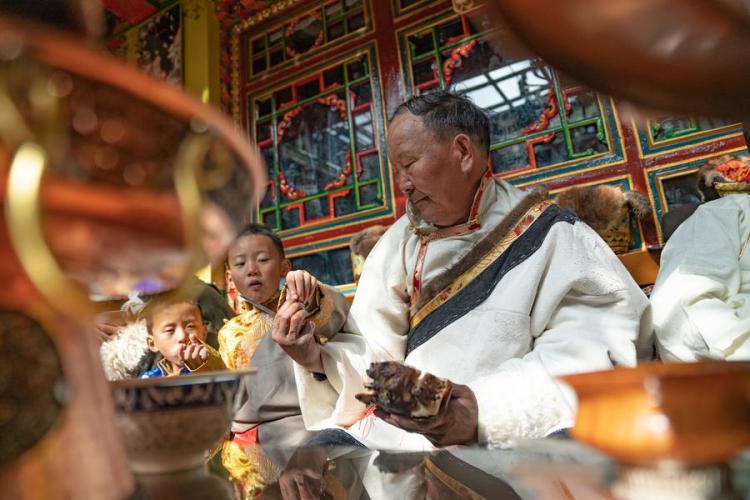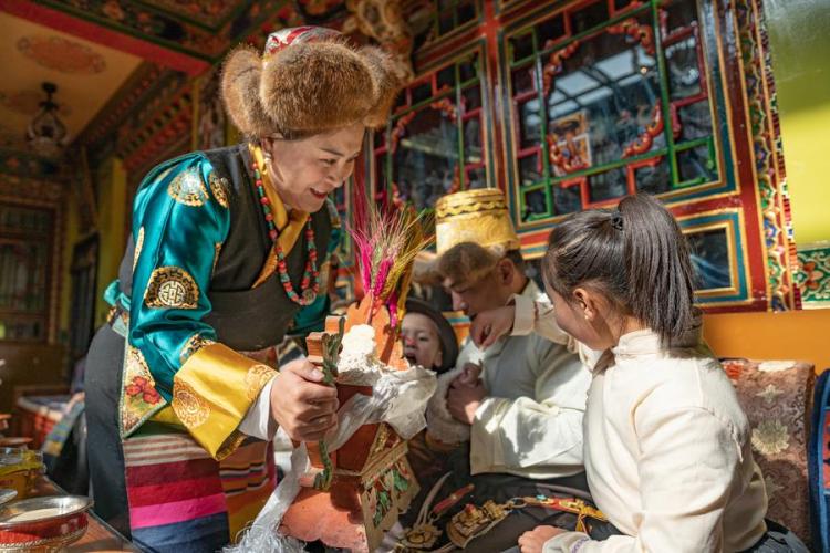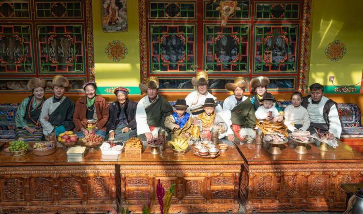 On Friday, the Pasang Butri family, who live in Xigaze City, got up early and dressed up in new clothes, welcoming the arrival of the farmers' New Year. This is the first time for the four-generation family to spend the farmers' New Year in their new home, a newly renovated three-story house.