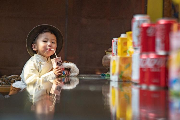 Pasang Butri's grandson drinks yogurt during the celebration of the farmers' New Year at home in Xigaze, southwest China's Xizang Autonomous Region, Jan. 12, 2024. (Photo by Tenzin Nyida/Xinhua)
