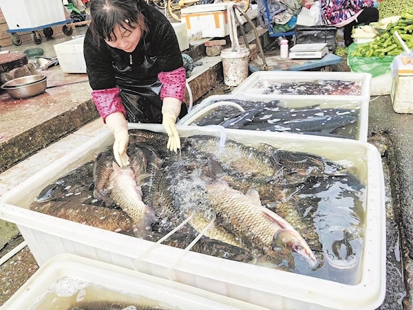 该市场专业人士介绍,当前从规模化养殖的农业企业、合作社,到个人经营的水产养殖户,基本都已经实现了科学养殖,淡水鱼的成活率高,质量上乘,一年四季都有鱼在售。市场上的水产品货源充足,到了春节旺季时,大家一起将存塘鱼集中出水,市场近乎饱和。