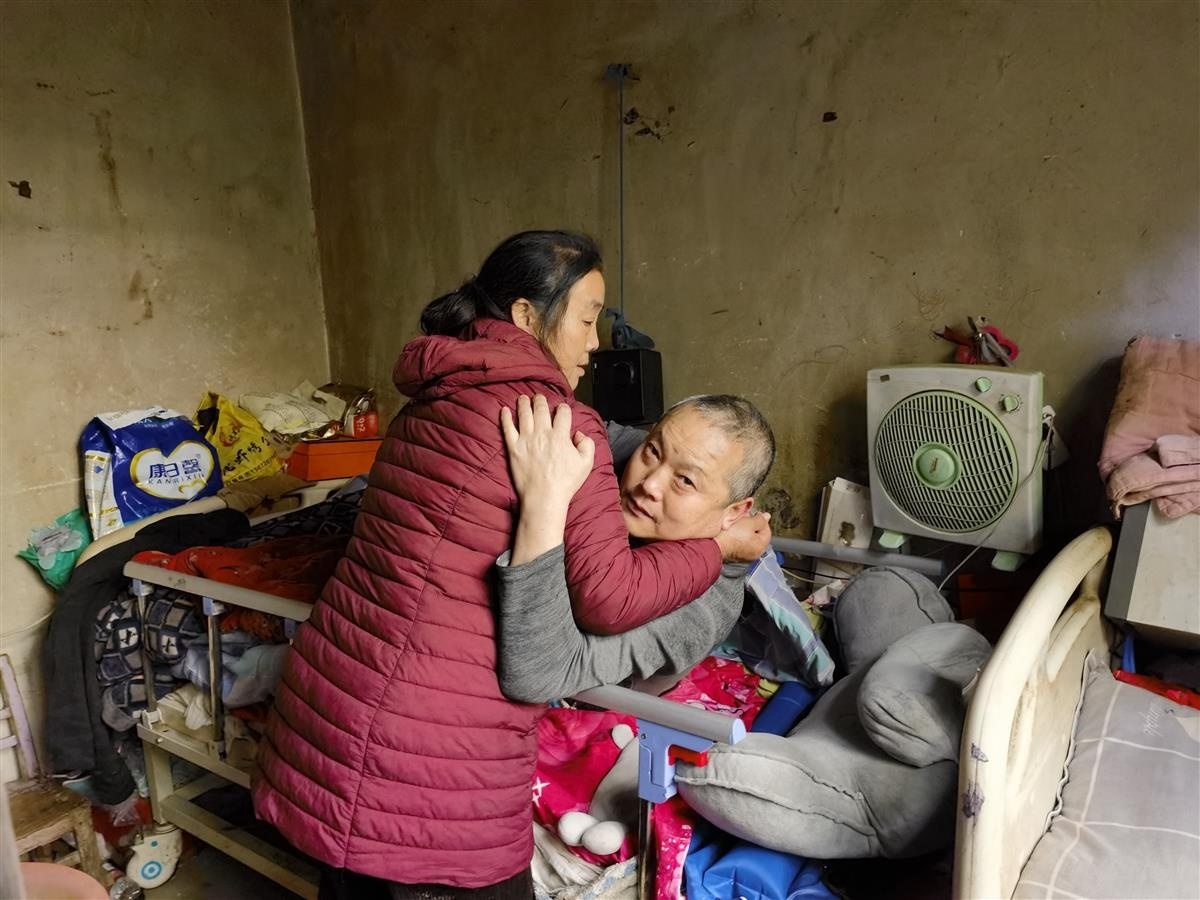 有一次,她下地干完活回来,发现丈夫从轮椅上滚落到地上,她费尽九牛二虎之力,才将其抱到床上,照顾完丈夫,王珊感觉自己累得要虚脱了,连抬起手的劲都没有。