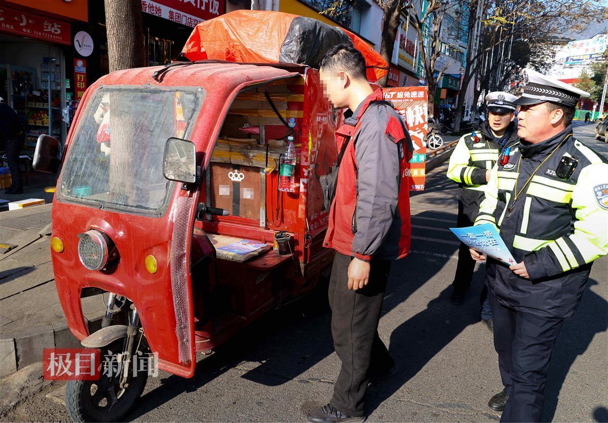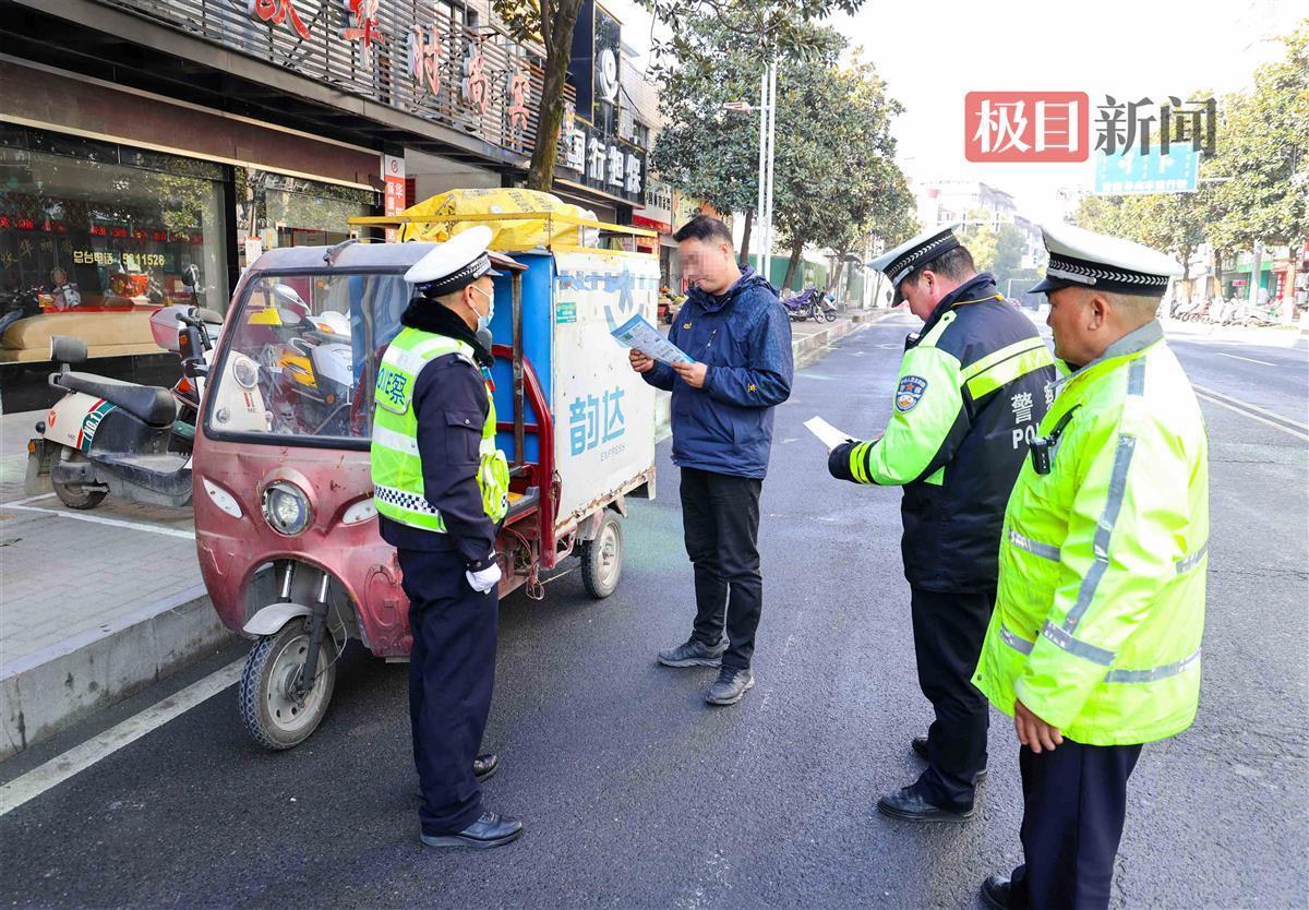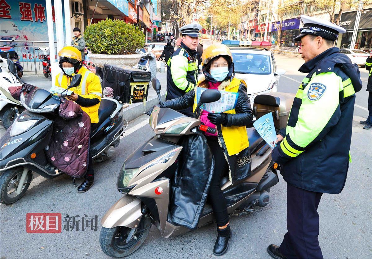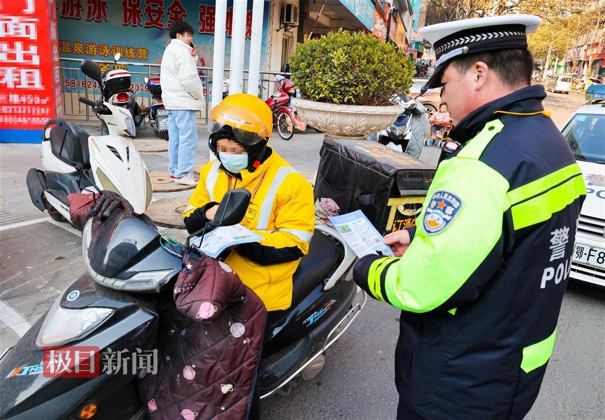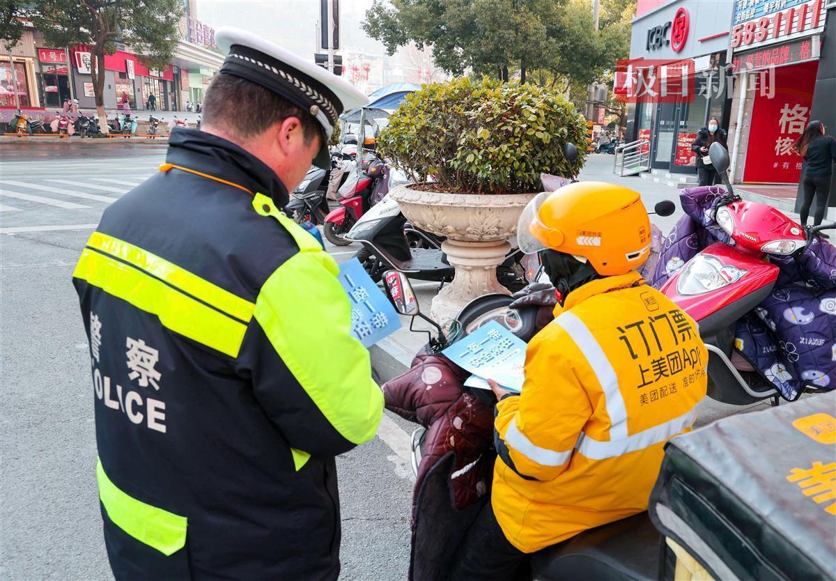 1月16日,湖北省襄阳市保康县公安局交警大队组织警力上路,对辖区快递、外卖骑手开展冬季道路交通安全宣传活动,以点带面,教育引导更多寄递物流从业人员自觉遵守交通安全法规,有效规避交通风险,预防和减少道路交通事故发生。
