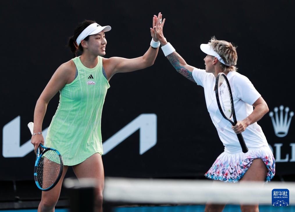1月16日,王欣瑜(左)/玛迪克-桑兹在比赛中击掌庆祝。新华社记者 马平 摄