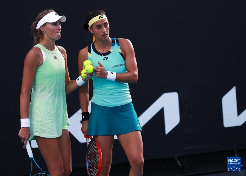 1月16日,加西亚(右)/姆拉杰诺维奇在比赛中交流。新华社记者 马平 摄