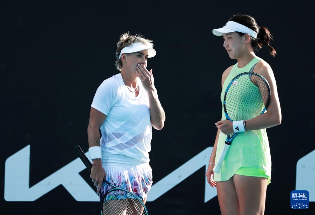 1月16日,王欣瑜(右)/玛迪克-桑兹在比赛中交流。新华社记者 马平 摄