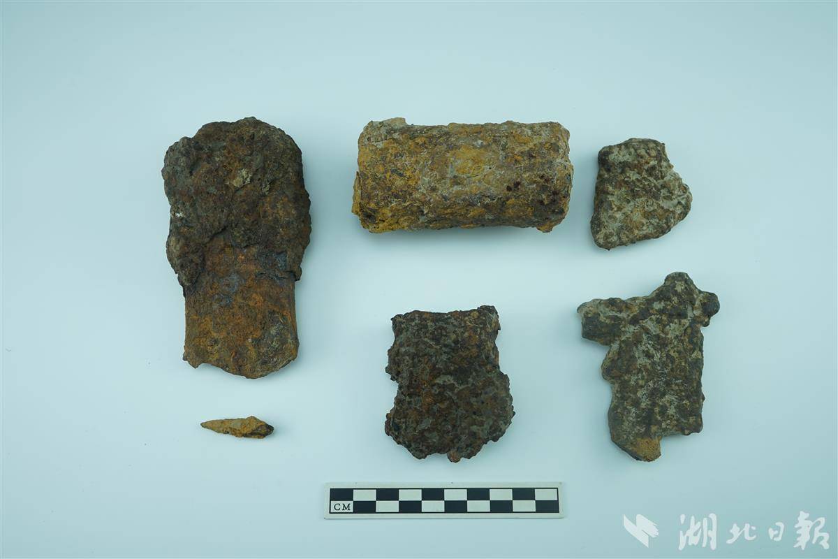项目负责人、湖北省文物考古研究院席奇峰介绍,2023年度罗兴居住、矿冶遗址点考古发掘,新发现一批铁器,整体锈蚀较严重,可辨器型有钁、锤、钺、斧、铤等。截至目前该遗址出土的铁器数量达50件之多,时代大多早在春秋晚至战国早期。通过之前对遗址出土铜铁合金器、仿铜器器型铁器的研究,考古队认为,这些铁器中的部分极有可能是以本地冶铜技术为基础加以改造就地生产制造的。该发现在曾国乃至长江中游地区考古工作中属罕见。