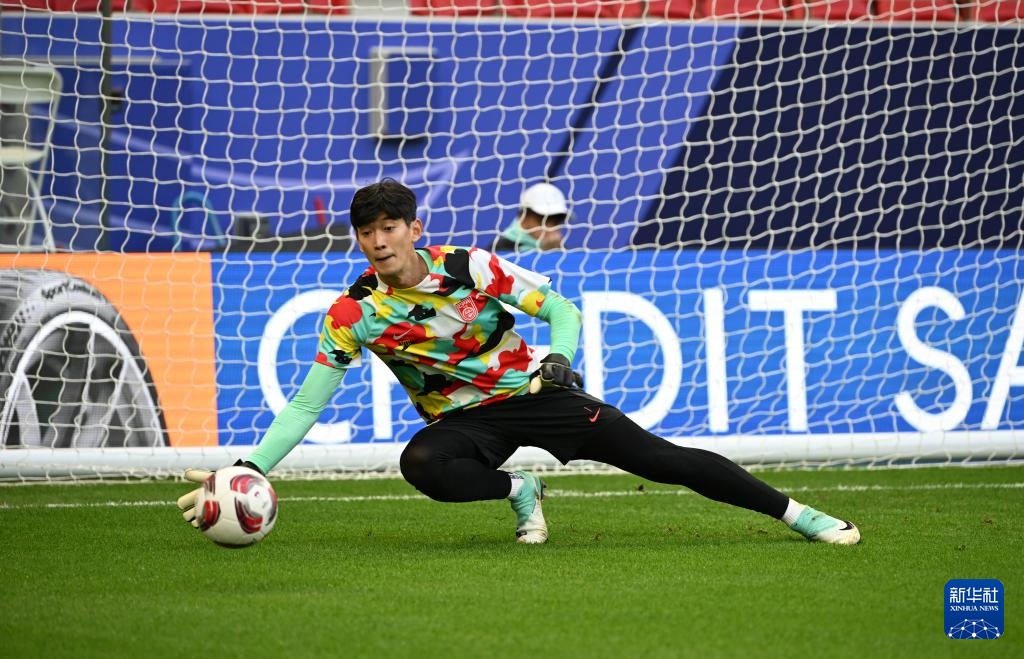 1月17日,中国队守门员颜骏凌在赛前热身。新华社记者 孙凡越 摄