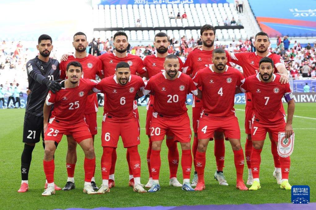 1月17日,黎巴嫩队首发球员在赛前合影。新华社记者 丁汀 摄