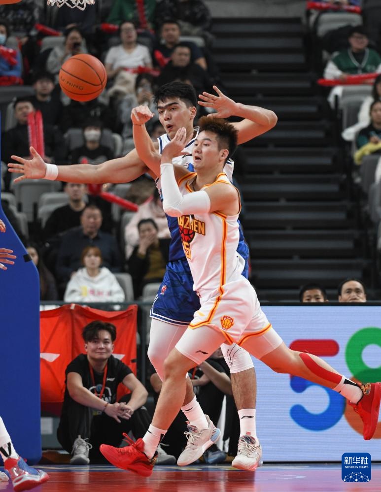 1月17日,深圳马可波罗队球员孙浩钦(前)在比赛中传球。新华社记者 王菲 摄