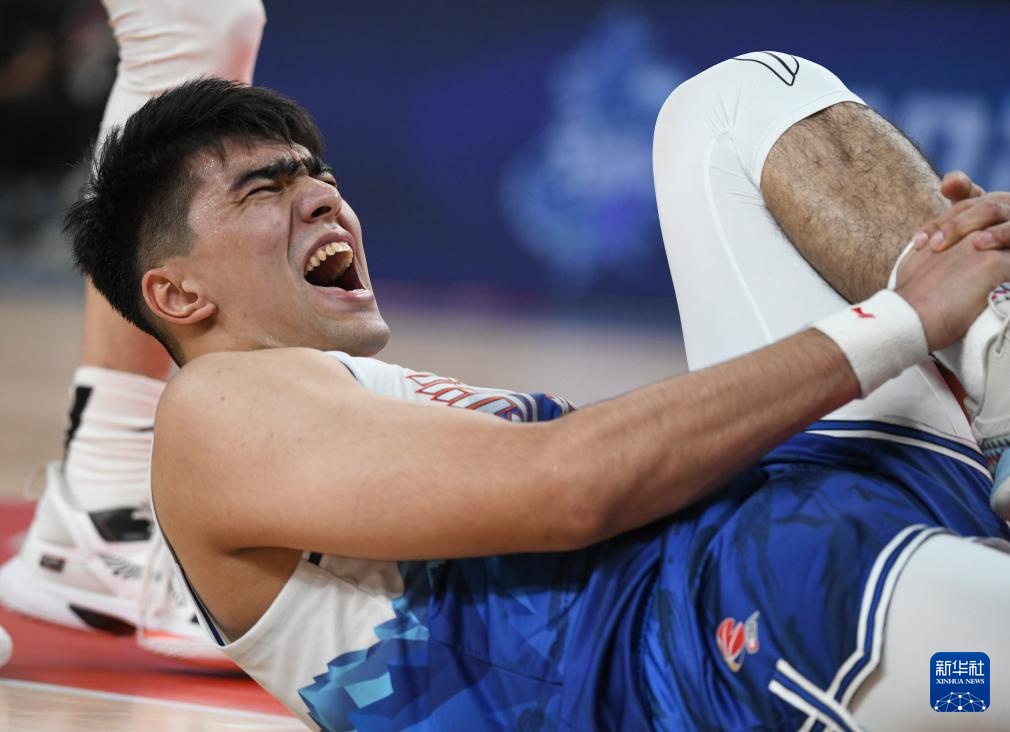1月17日,新疆伊力特队球员鲁吐布拉在比赛中受伤倒地。新华社记者 王菲 摄