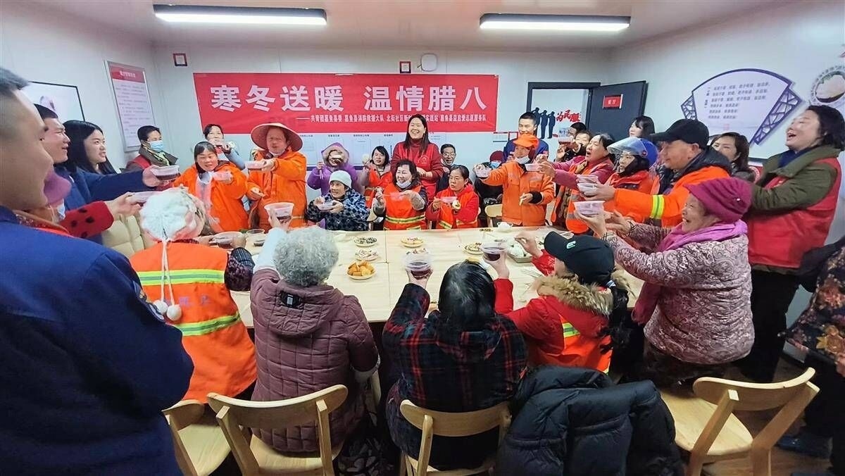 吕永红还介绍,除了梁家山社区幸福食堂以外,该协会当天在根据地美食城、外婆家宴、嘉湘苑、万家厨房、万家大碗菜、非遗南酒等地设置了“腊八粥”免费发放点。
