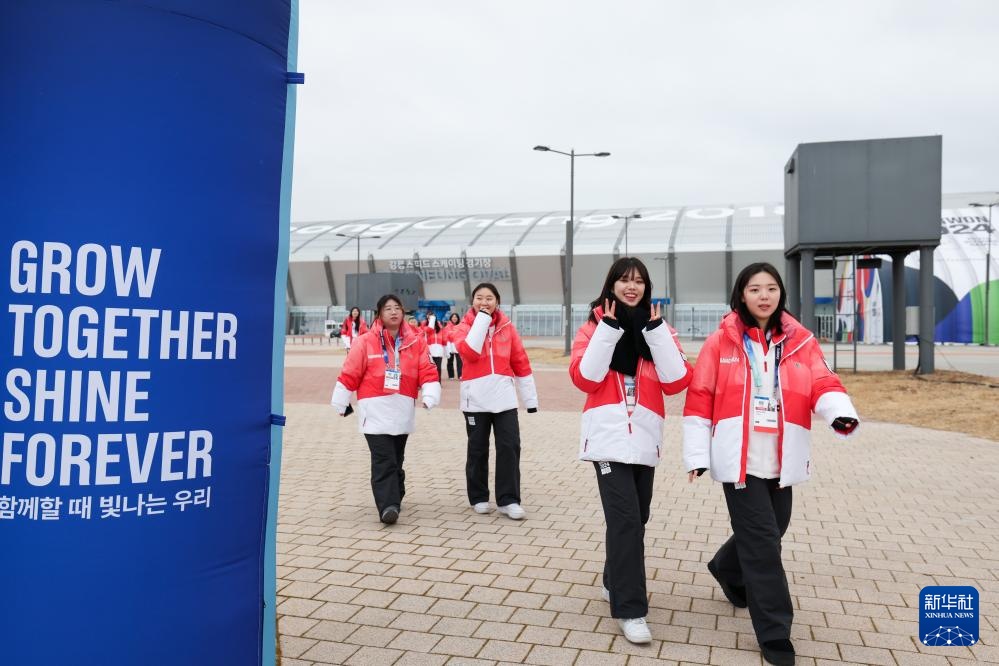 这是1月18日拍摄的在江陵奥林匹克公园内工作的志愿者。新华社记者 许雅楠 摄