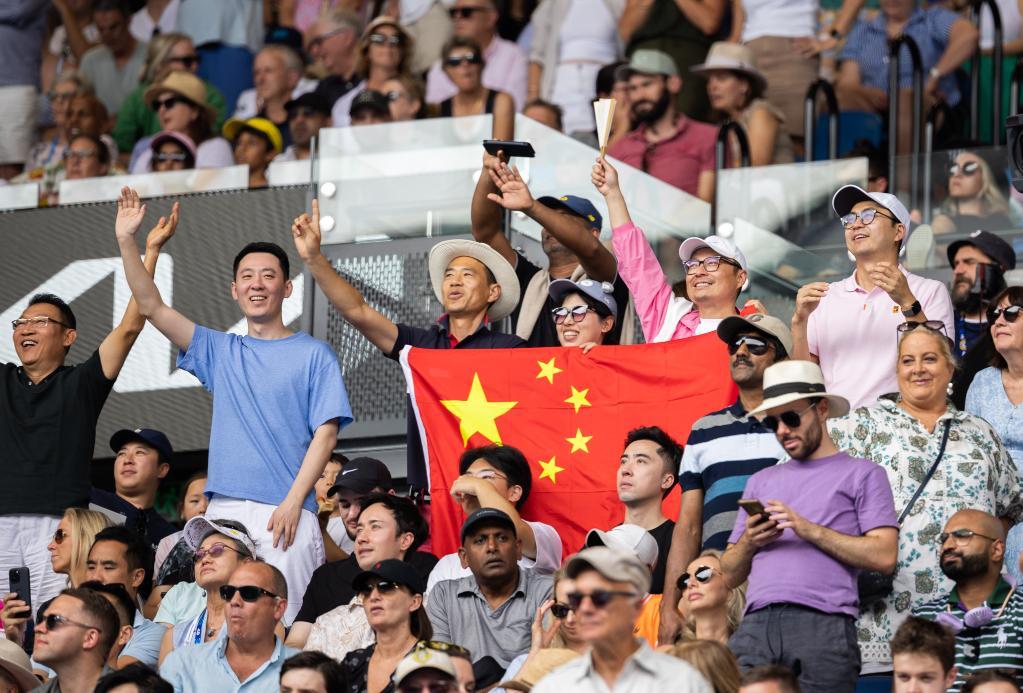 1月20日,观众为商竣程加油助威。新华社发(胡泾辰摄)