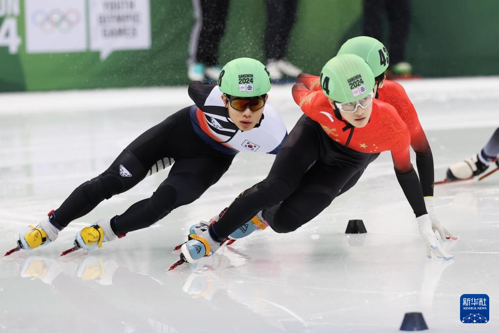 当日,2024年江原道冬青奥会短道速滑男子1500米A组决赛在江陵冰上运动馆举行。