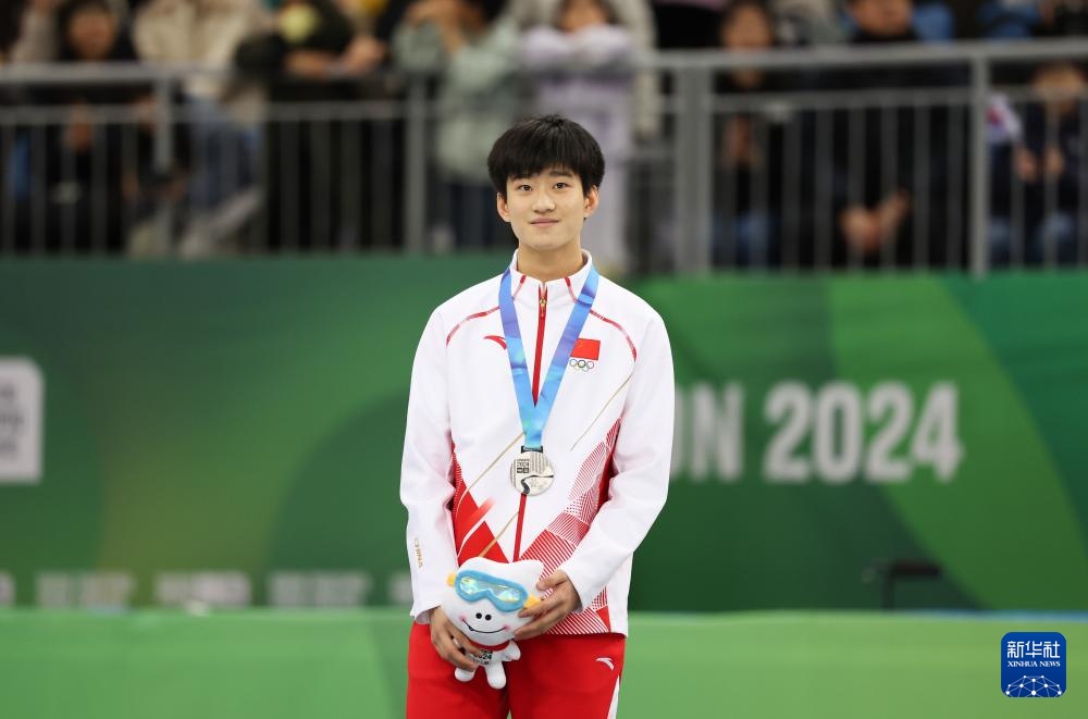 1月20日,中国选手张心喆在颁奖仪式上。最终,他以2分22秒095的成绩获得亚军。新华社记者 许雅楠 摄