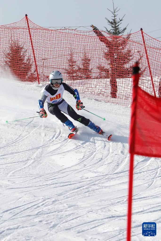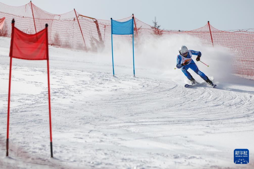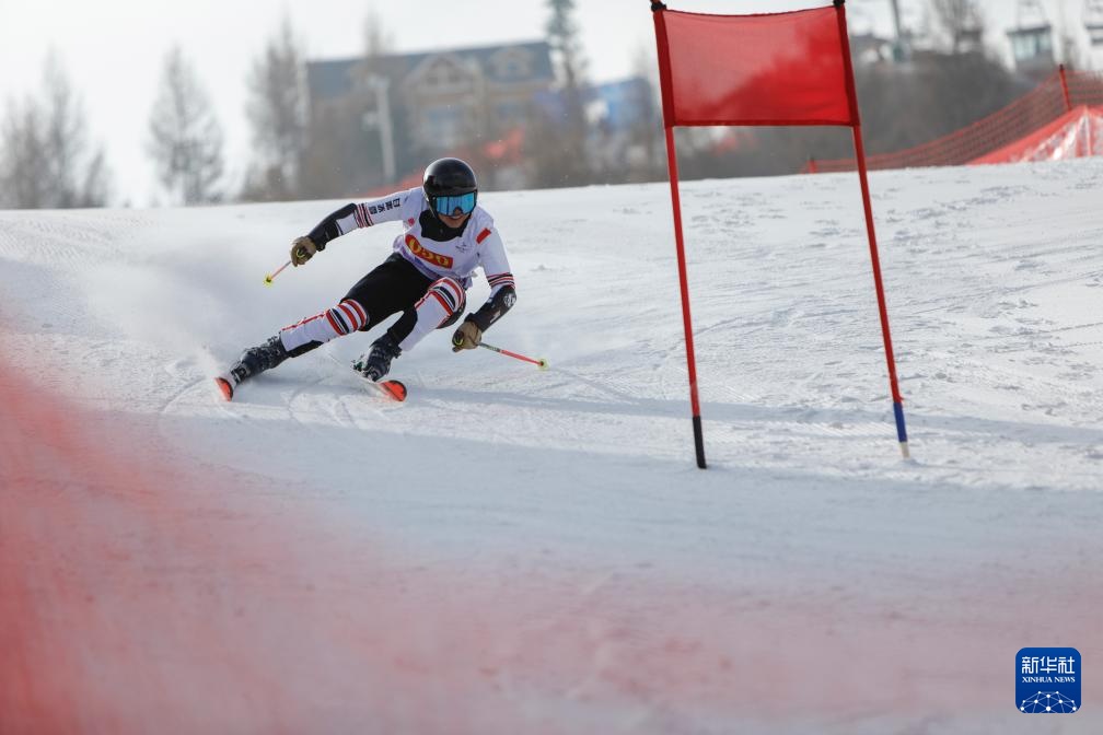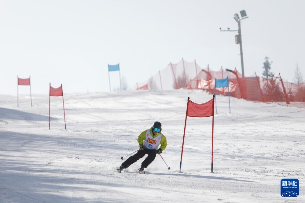 1月20日,榆中JDI滑雪俱乐部一队选手孙彦鹏在男子组大回转比赛中。新华社记者 方欣 摄