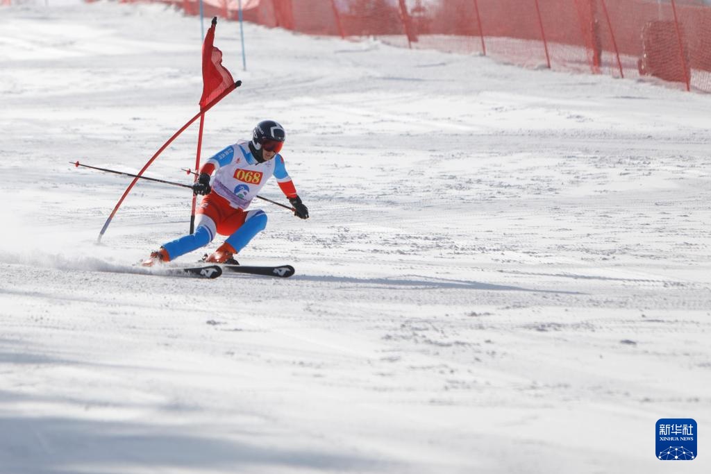1月20日,平行线双板队选手李祥龙在男子组大回转比赛中。新华社记者 方欣 摄