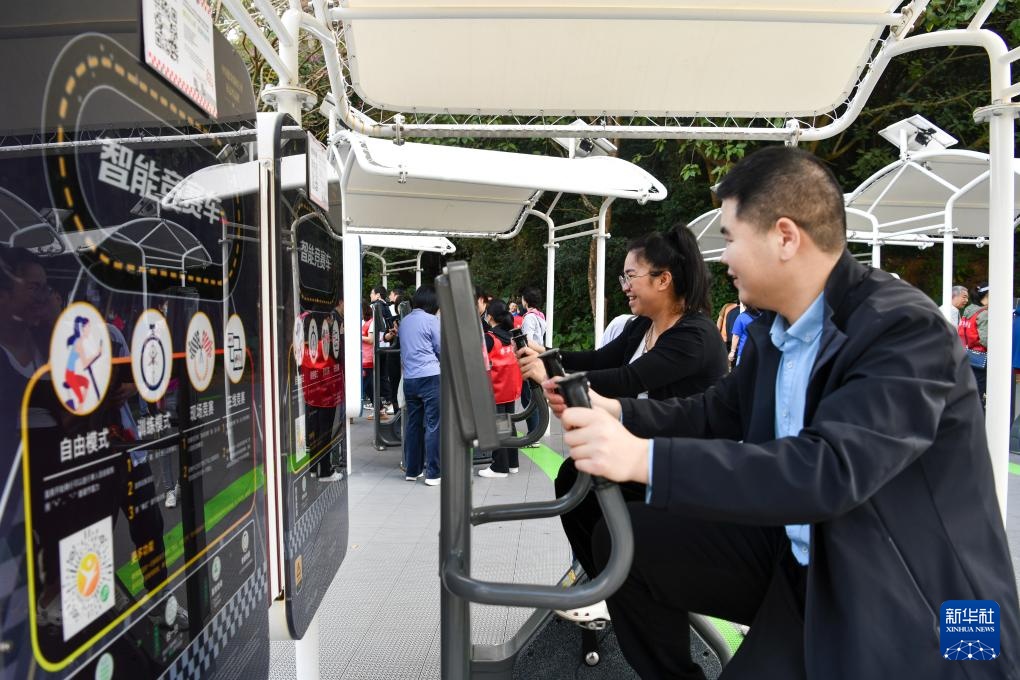 当日,深圳市室外智能健身竞赛活动举行。市民可以在全市120个室外智能健身房扫码参加1公里骑行挑战。