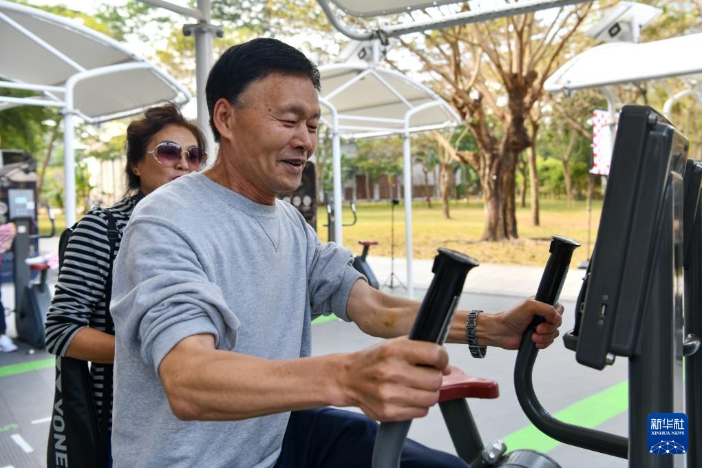 1月20日,市民在莲花山公园西区室外智能健身房参加竞赛活动。新华社记者 梁旭 摄