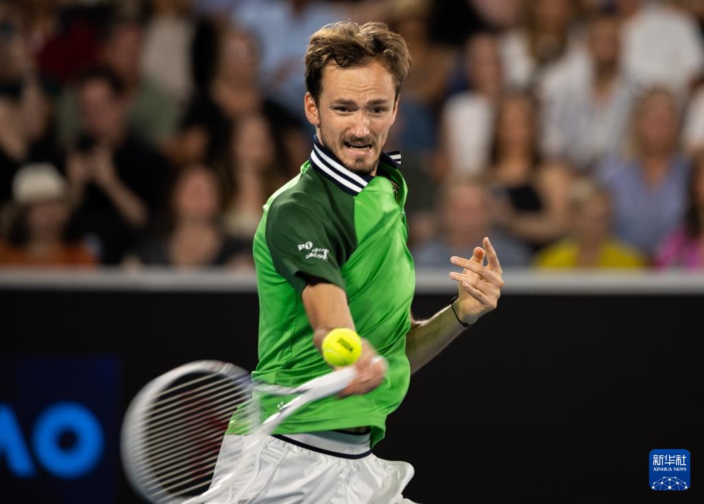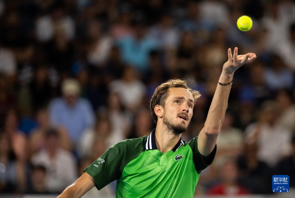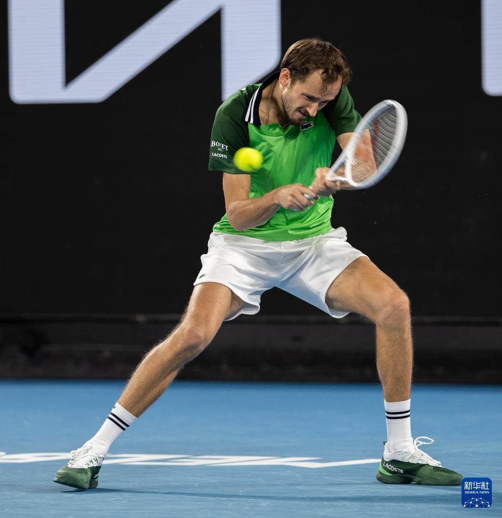 1月20日,梅德韦杰夫在比赛中回球。新华社发(胡泾辰摄)