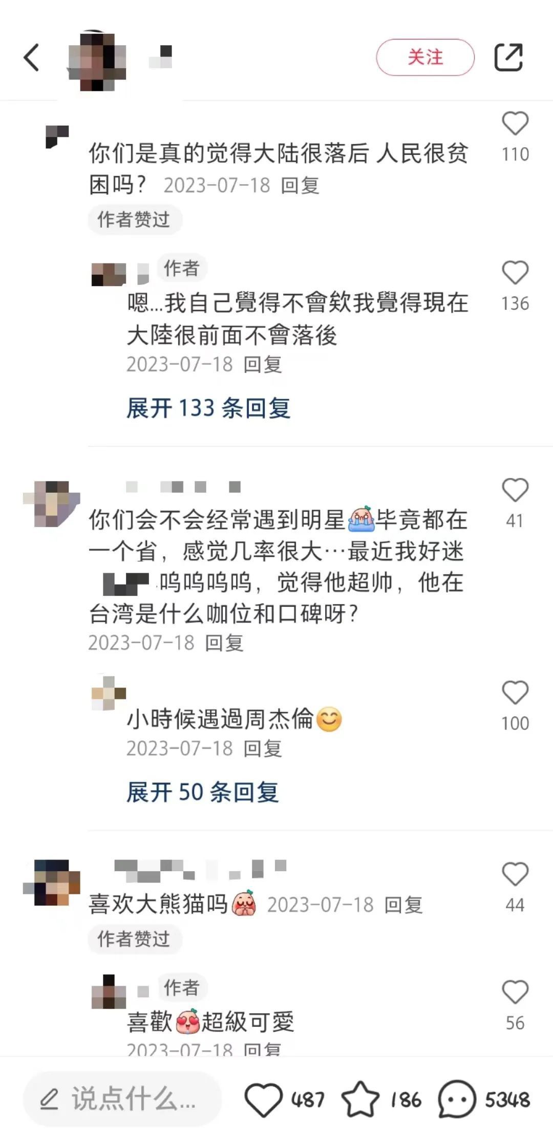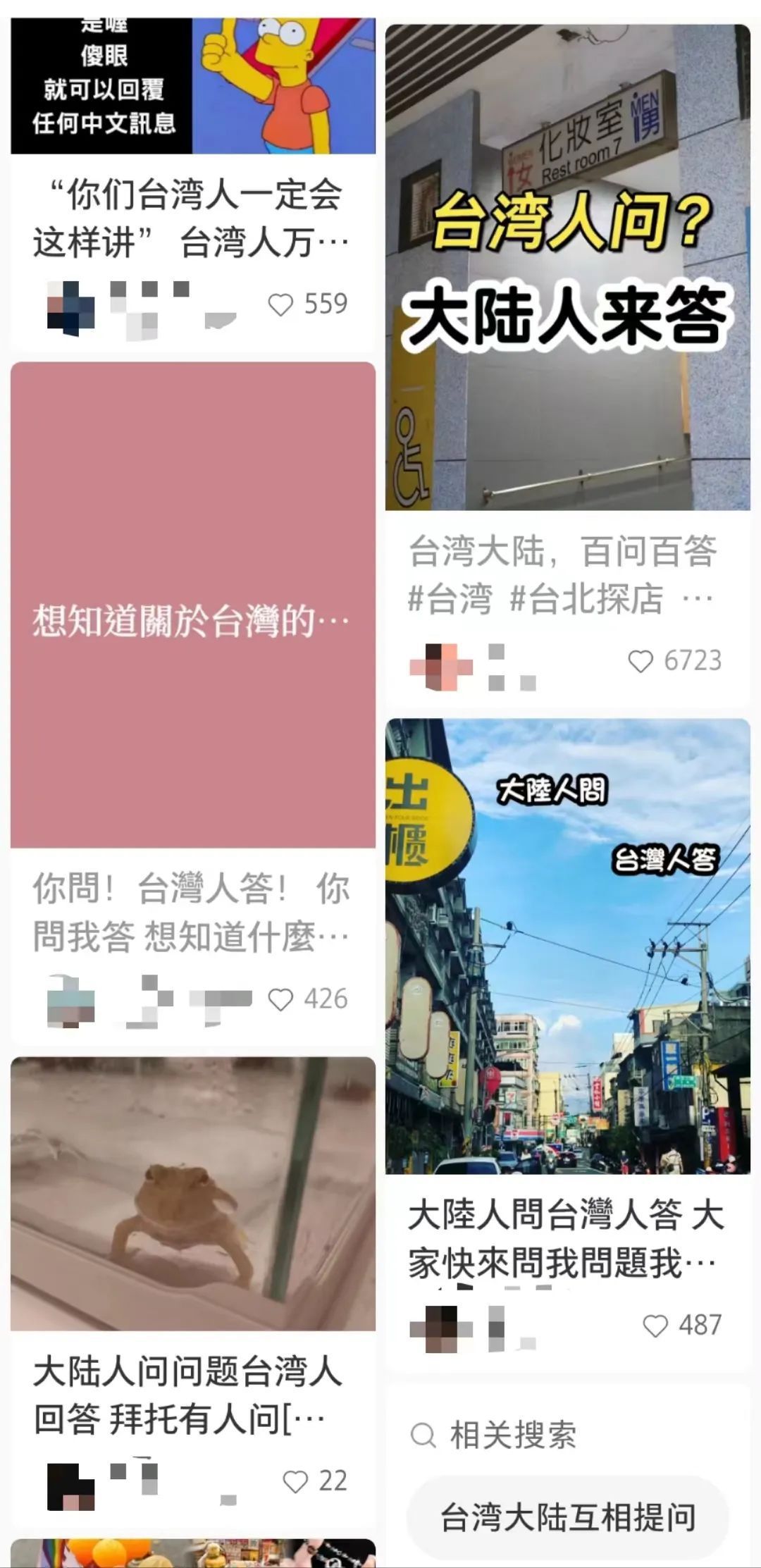 “大陆哪个城市的美食多?”“用现金支付可以吗?”“毕业后想去大陆工作,可以分享一下经验吗?”……小红书上有不少“台湾人问,大陆人答”的帖子,两岸年轻人就生活、文化、饮食等话题,在评论区留言、互动。当然,也有台湾年轻人现身回答岛内情况,同样热评纷纷。