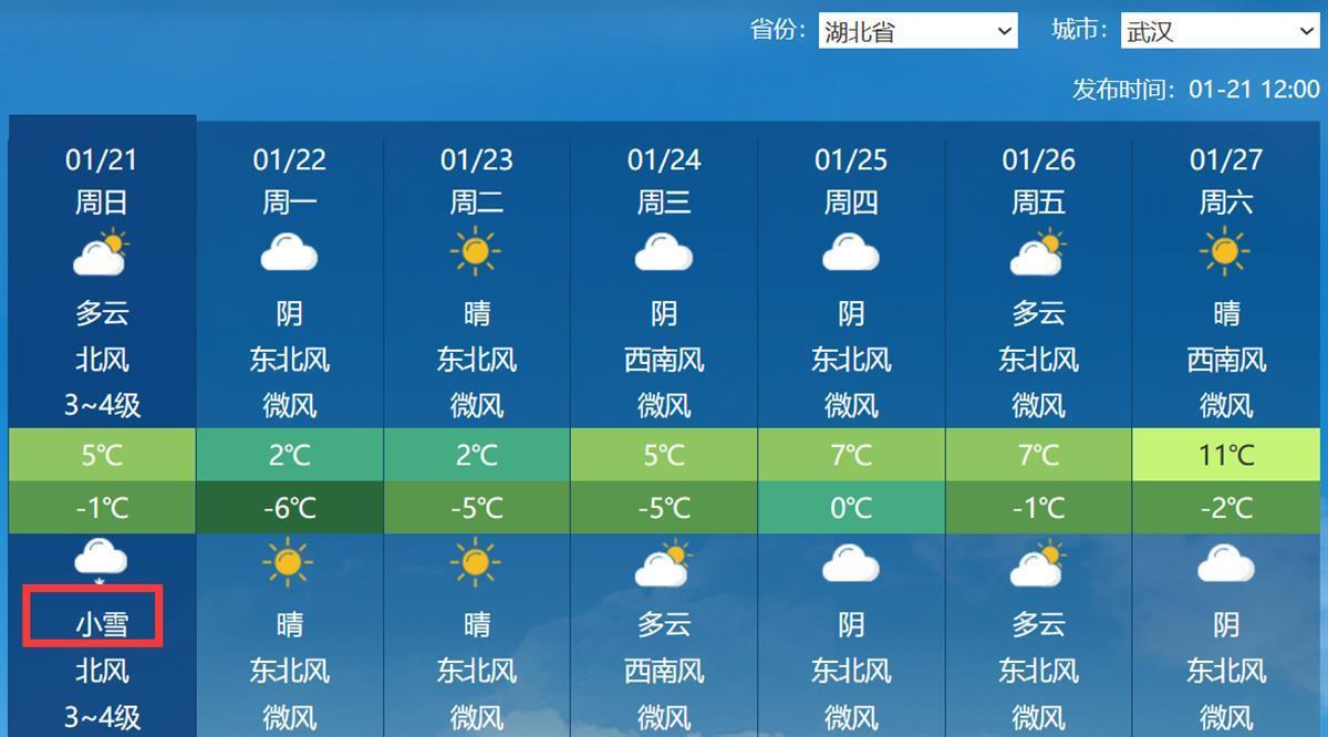 天气预报今日(1月21日)夜间武汉有小雪,可偏偏今日一大早就艳阳高照,午后1时许,阳光劲头十足,很多朋友疑惑:这雪还会下吗?