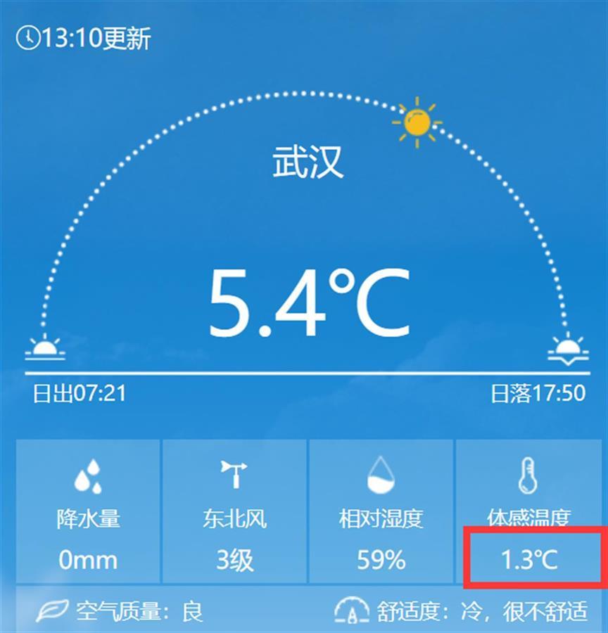 今日阳光似满血复活,但外出时大家还是感觉很冷吧。气象监测显示,午间1时,气温也升到了5.4℃,但体感温度只有1.3℃。