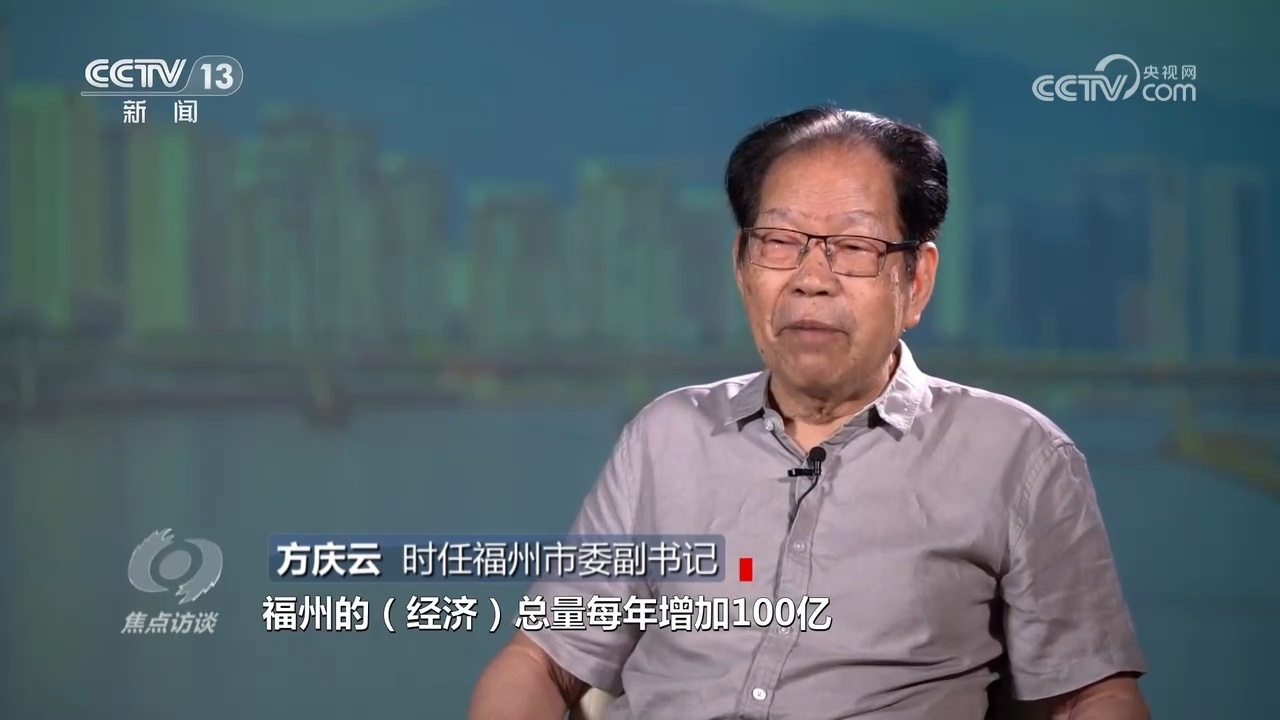 方庆云:“1990年的时候,福州经济总量将近100亿元的水平,1996年,习书记离开的时候达到600亿元,说明这6年时间,福州的经济总量每年增加100亿元,等于每年造一个新的福州。”